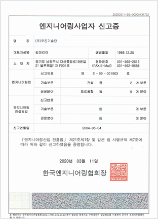 엔지니어링사업자 신고증